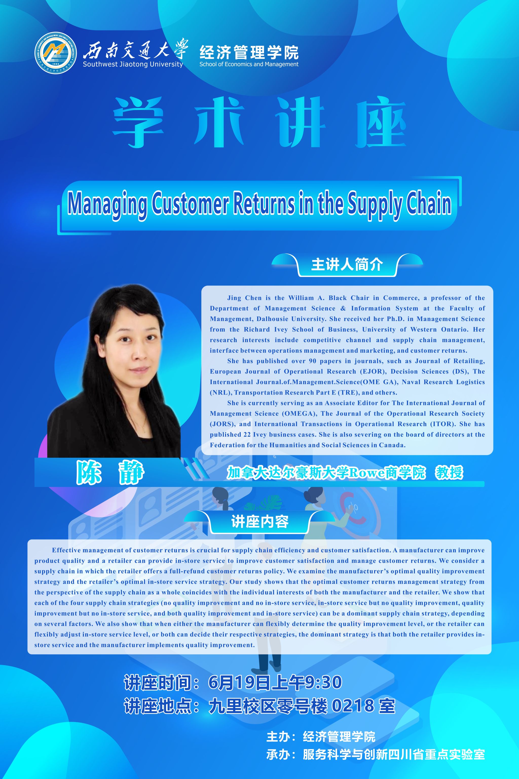 加拿大达尔豪斯大学Rowe商公司陈静教授学术讲座