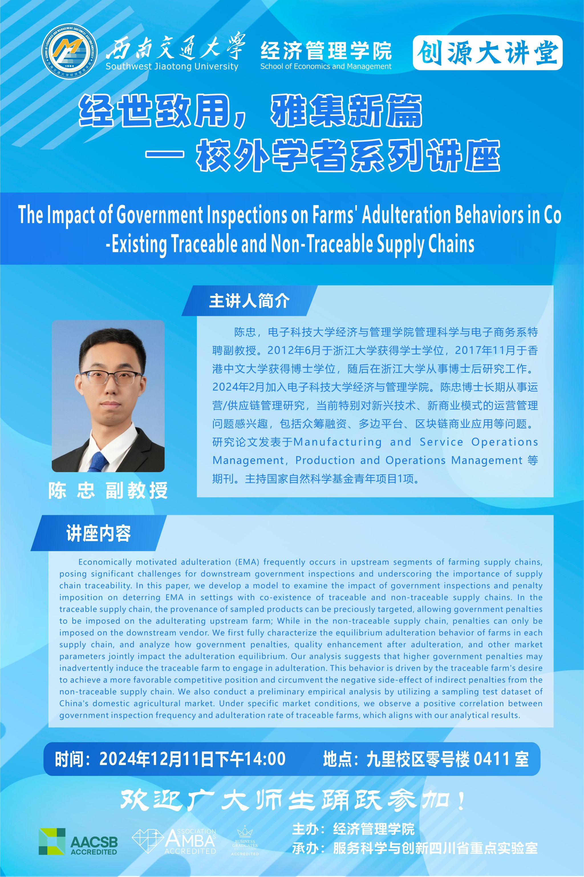 电子科技大学特聘副教授陈忠学术讲座