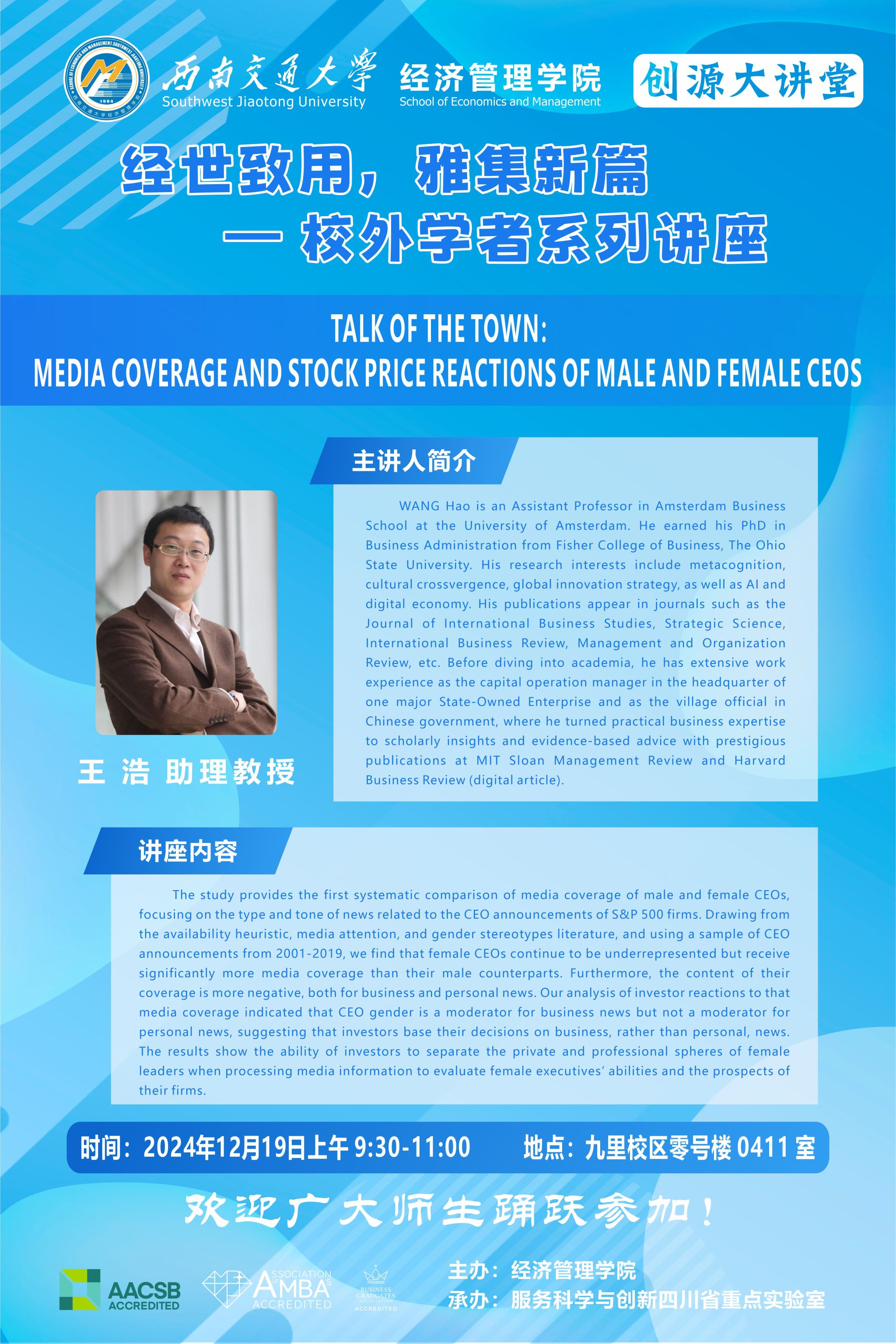 阿姆斯特丹大学商公司助理教授王浩学术讲座