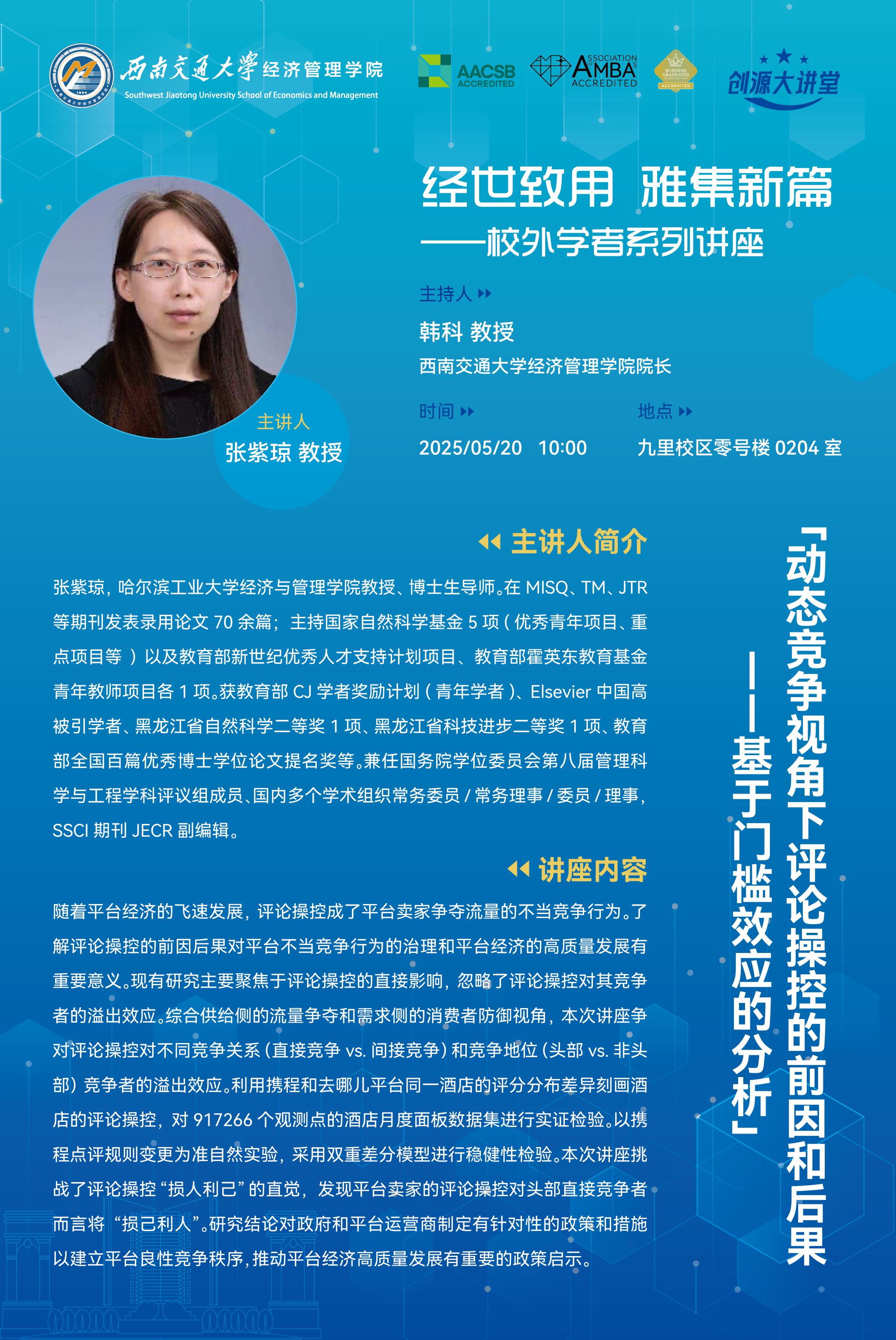 哈尔滨工业大学经济与管理公司张紫琼教授学术讲座