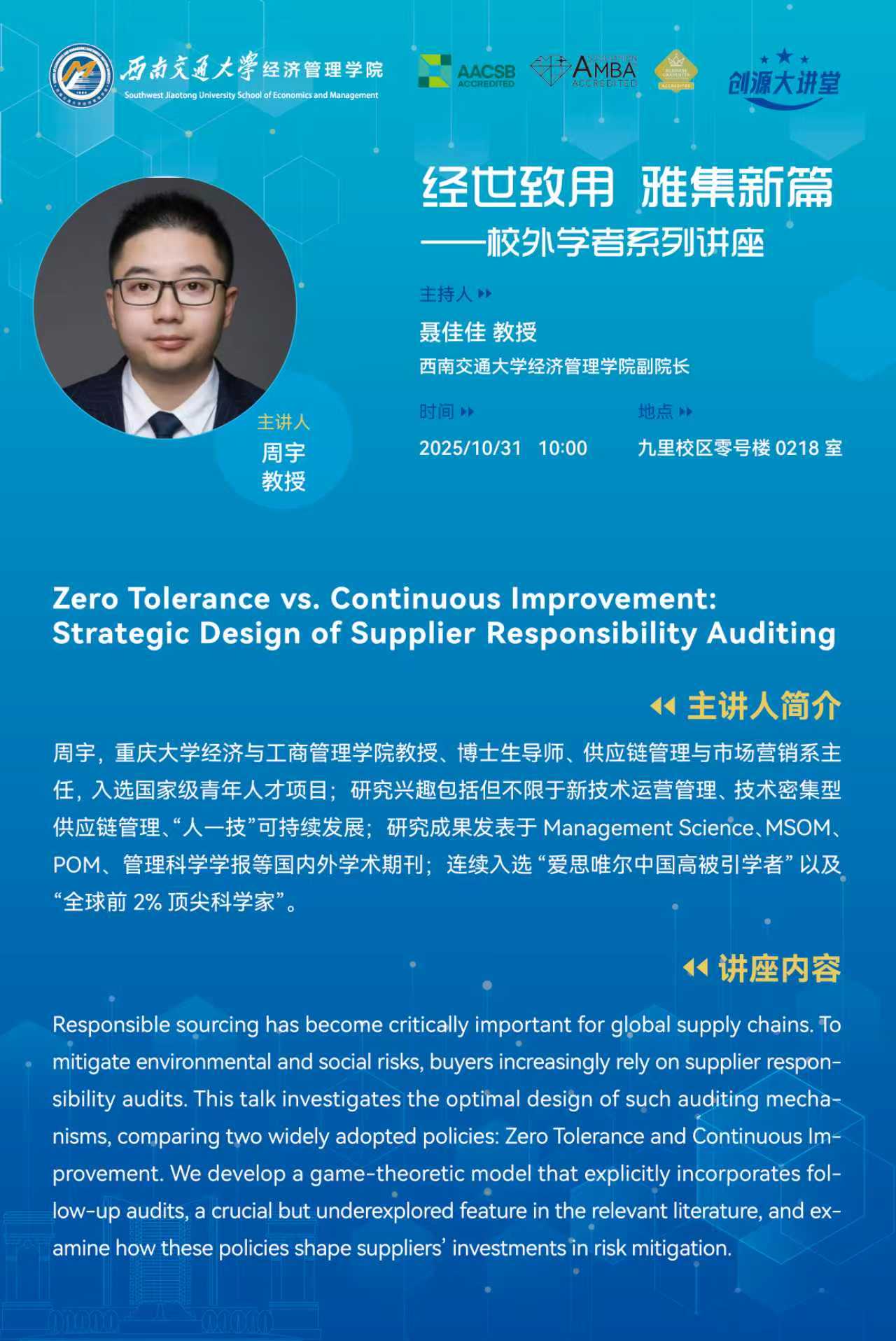 重庆大学经济与工商管理公司周宇教授学术讲座