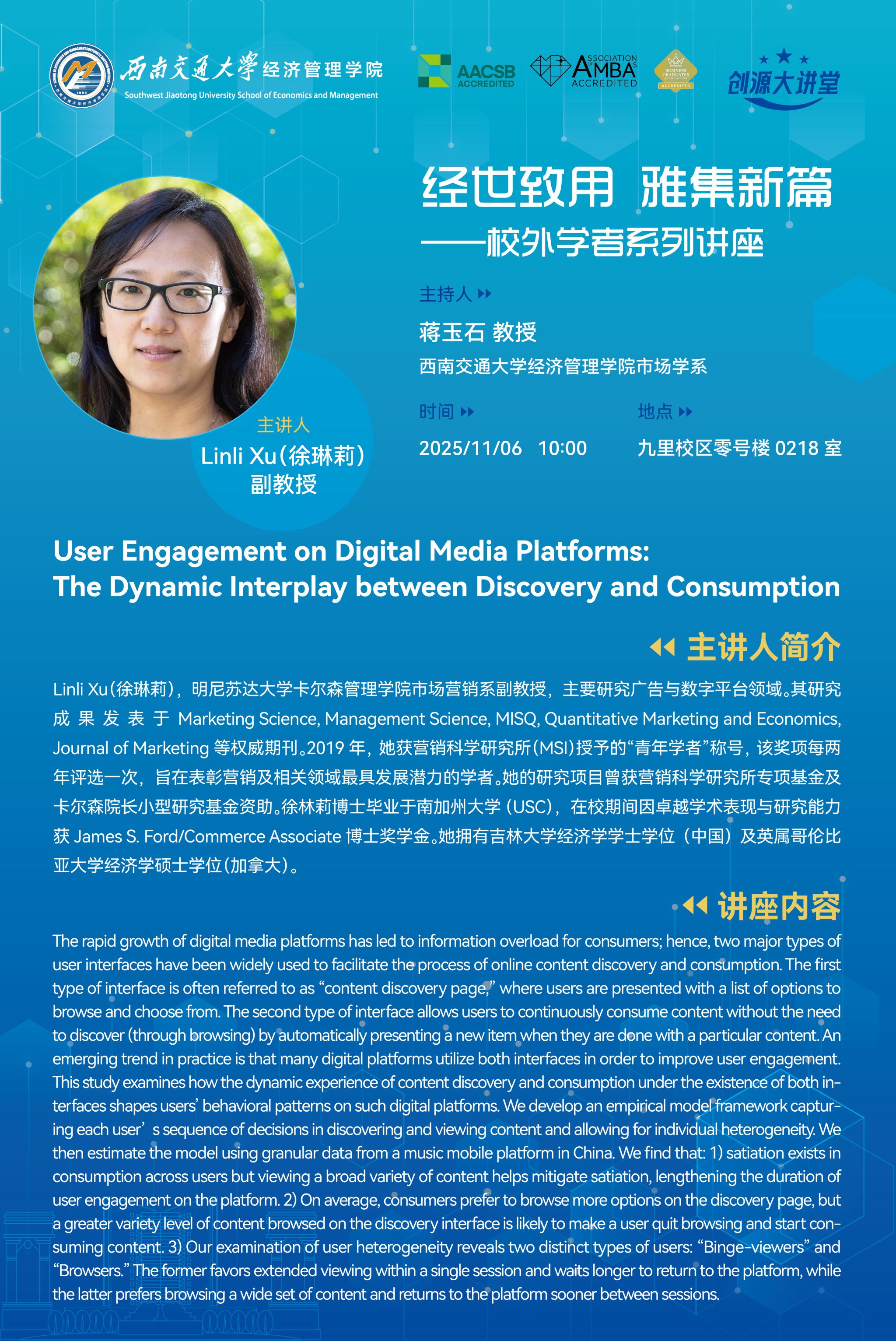 美国明尼苏达大学卡尔森管理公司Linli Xu(徐琳莉)副教授学术讲座