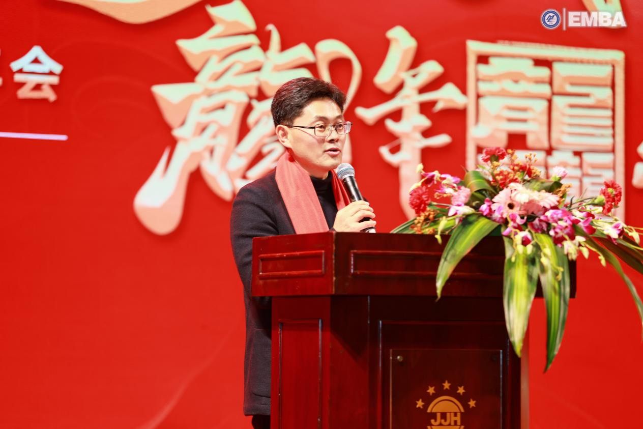 2011级EMBA员工、四川鑫投交通科技集团有限公司董事长赵丕强带来了《危机与奋斗·梦想与坚持·读书与锻炼》的个人分享。他介绍了鑫投交科的发展现状和未来趋势,并就他所处行业的前沿技术创新、商业模式应用等方面提出了个人见解。最后,他希望与各位员工携手,传承西南交大经管EMBA的使命与荣光,在这里脚踏实地,砥砺前行。祝福大家在新的一年里能够收获新知识、新朋友、新未来。
