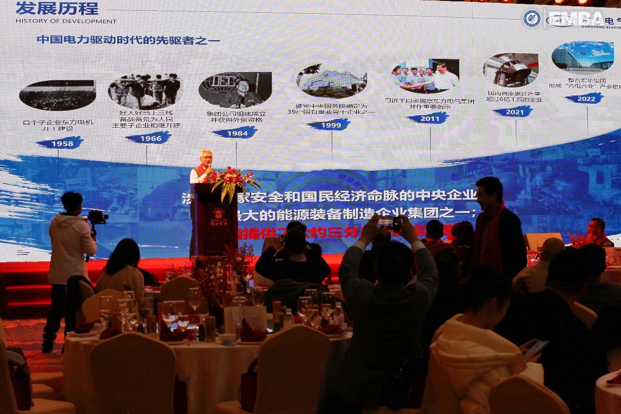 2009级EMBA员工、中国东方电气集团重大项目专员、东方电机有限公司党委副书记陈文学作题为《双碳背景下能源装备企业战略转型》的主题分享。他以国家《十四五现代能源体系规划》为出发点,强调在“双碳”背景下能源装备企业的使命是构建清洁、低碳、安全、高效的现代能源体系。他希望各位员工同学都能够紧紧抓住新能源发展的趋势,拥抱双碳、布局未来!