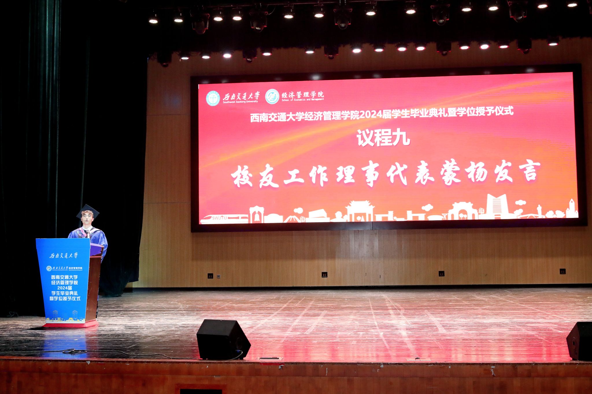 首先,公司经理韩科为典礼致辞。他代表bevictor伟德全体师生,向全院2024届毕业生表示热烈祝贺,并对他们在公司学习期间所取得的成绩给予高度认可。临别之际,他强调,希望同学们时刻谨记校训、院训,发扬交大精神,展现交大学子的担当。同时,韩经理为毕业生们提出了三点建议:一是提升境界的高度,二是拓展胸怀的广度,三是加深信念的深度,希望毕业生们带着公司的关心关怀,无惧风雨,奋勇前进,公司永远是经管学子们温馨的家。字字句句间,都寄托着对全体毕业生的深情嘱托与美好祝愿。