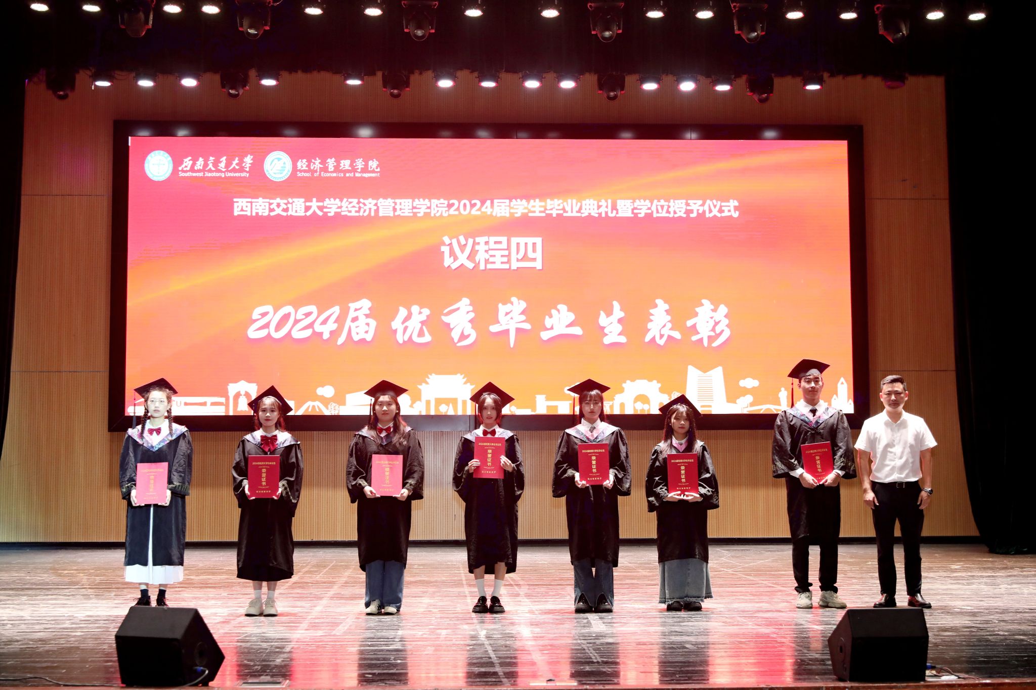 公司党委书记郭强宣读2024届本科生专项奖表彰名单、2024届MBA优秀毕业生名单,副经理李良为获奖毕业生颁奖。