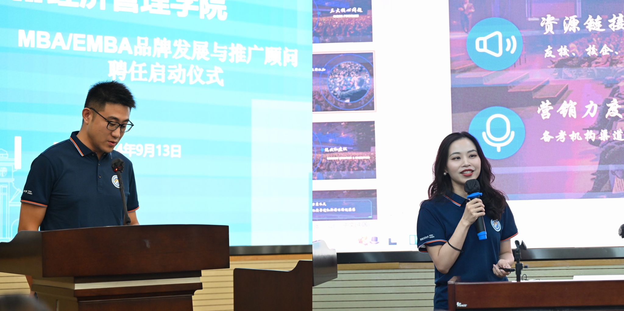 2022级MBA线上线下班杨勇作为发言代表提到,身为MBA项目的院友,他深感荣幸能够回到公司担任品牌发展与推广顾问,并承诺将利用自身的行业经验和社会资源,为公司品牌发展贡献力量。另一位发言代表2023级MBA周末1班的曾丹丽则分享了她对公司MBA发展与推广的认知,并表示,将用好自身优势,助力公司在更广层面上提升知名度,吸引更多优秀人才加入交大。