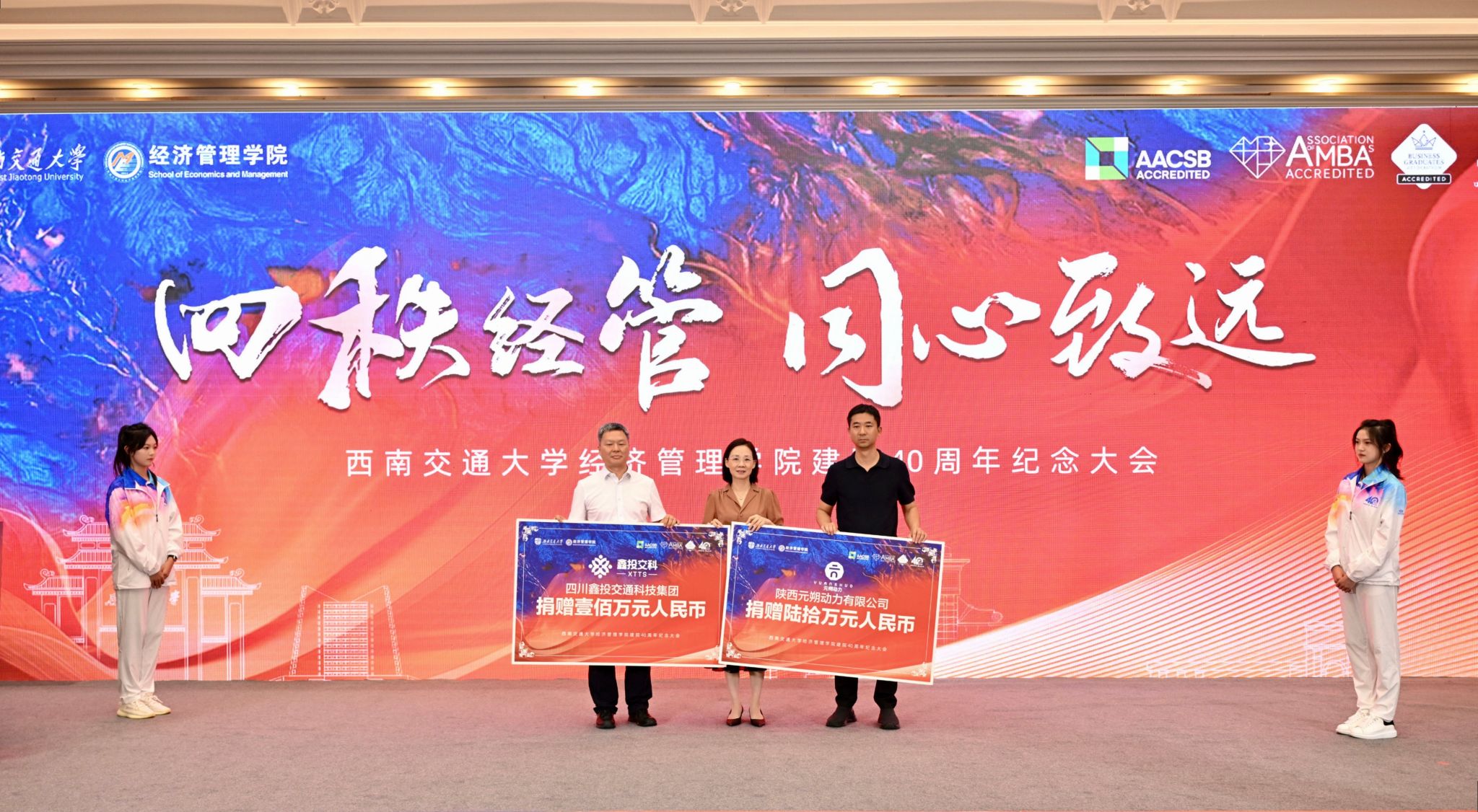 为凝聚员工力量,值此建院四十周年之际,公司特设立“bevictor伟德发展基金”,受到了广大员工的广泛支持。捐赠仪式上,公司党委副书记杨爱华代表公司接受捐赠,并为四川鑫投交通科技集团总经理李勇、陕西元朔动力有限公司董事长黄福臣颁发捐赠赠书。捐赠人李勇在发言中谈到,交大经管人是鑫投交通科技集团最为重要的管理力量,他代表集团为公司四十周年华诞送上诚挚祝福。捐赠人黄福臣在发言中谈到,交大老师们严谨认真、求真笃实,员工们独立思考、追求卓越的优秀学风为他的从商之路奠定了坚实基础,祝愿交大bevictor伟德的未来更加辉煌。“西南交通大学bevictor伟德发展基金”寄托了所有捐赠人、广大员工、社会各界对交大经管实现新发展、开辟新局面的殷切期盼,所筹款项将用于建院四十周年纪念系列活动,公司教学、科研、人才培养等未来长远发展。