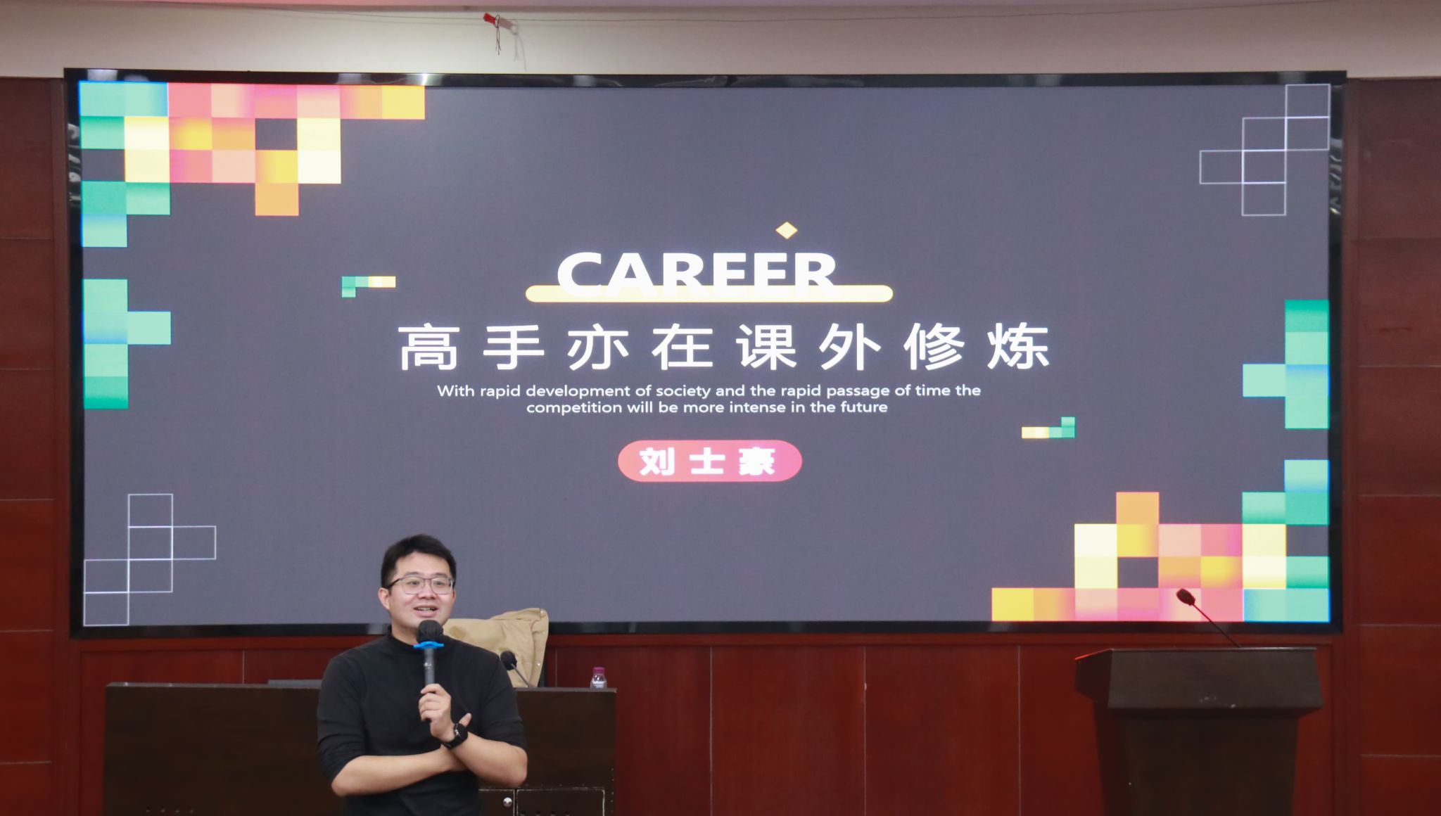 最后,刘士豪引导新生们思考对未来的发展规划,提醒大家要善用大学时光,为将来的职业生涯奠定坚实的基础。他的分享不仅激励了在场的新生,也促使新生开始认真思考自己的老员工活和未来方向。