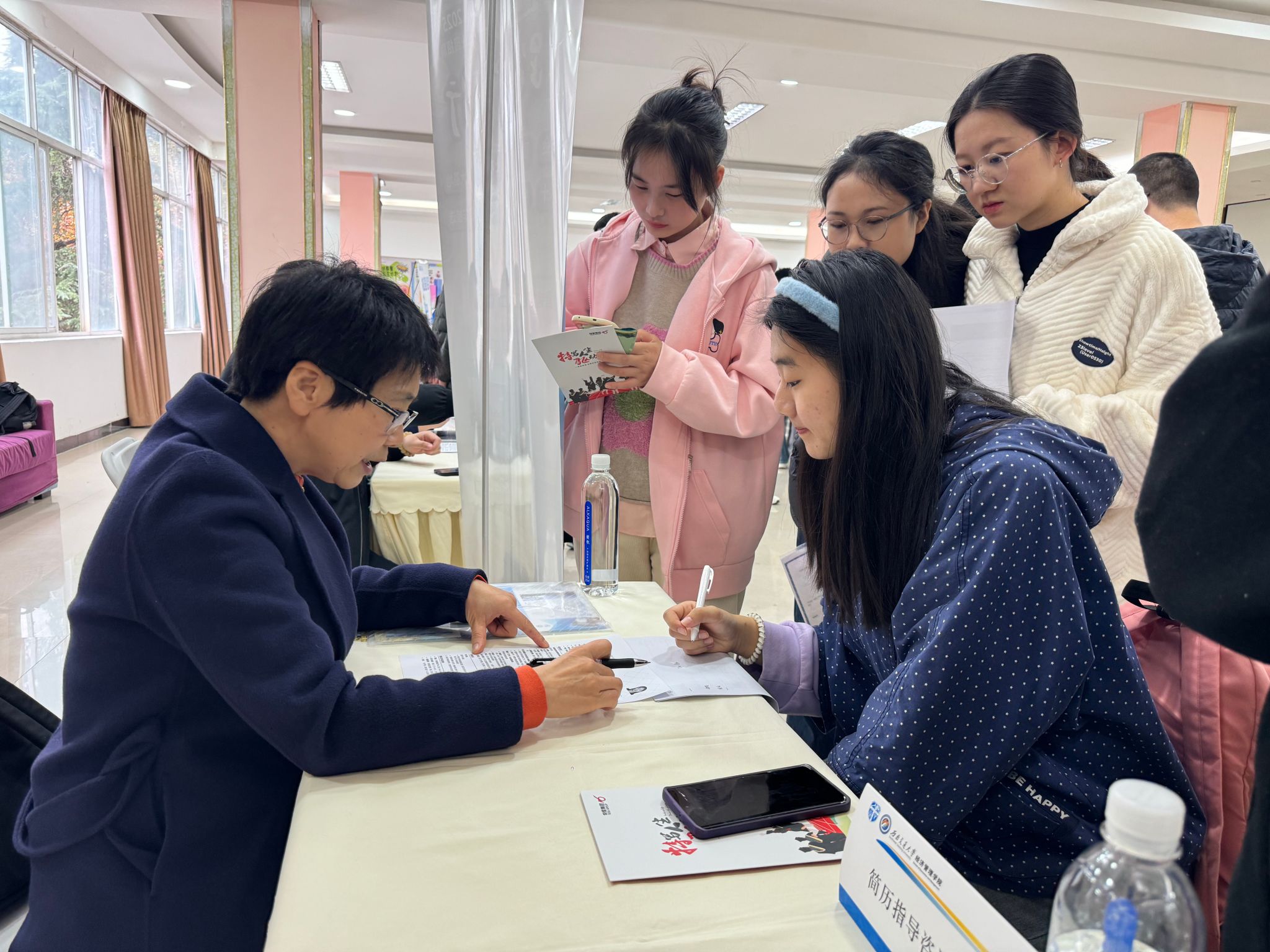 量身定制,现场简历咨询人气旺。本届员工单位招聘会的现场设立了专门的简历咨询服务台,咨询老师们在仔细查阅学子们递交的简历后,“一对一”地从排版、格式、内容等方面入手提出了宝贵的优化意见,以帮助学子们在求职过程中有效地提升自己的核心竞争力。简历咨询服务台旁排起了长队。