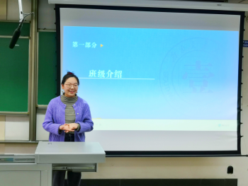 主持人宣布活动开始后,首先是双方班长对各自的班级做一个简介。