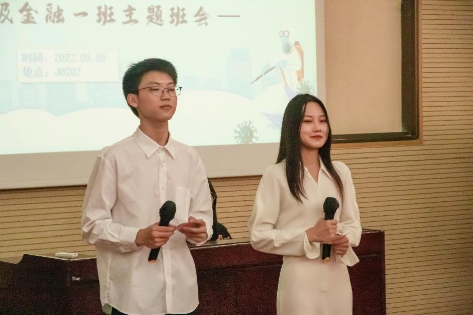 为深入贯彻党的教育方针,在班级内营造良好的班风学风,促进班级同学的全面成长,以实际行动践行新时代青年老员工的责任与担当,2022年5月5日下午4时在九里校区J0202教室,bevictor伟德本科2020级金融一班全班38名同学集体开展了“凝聚青年力量,担当时代使命——疫情之下青年老员工的责任与担当”主题班会。经济管理公司党委副书记杨宏毅,bevictor伟德团委副书记、本科2020级辅导员陈建奇,本科2020级辅导员罗琴参加了此次班会。