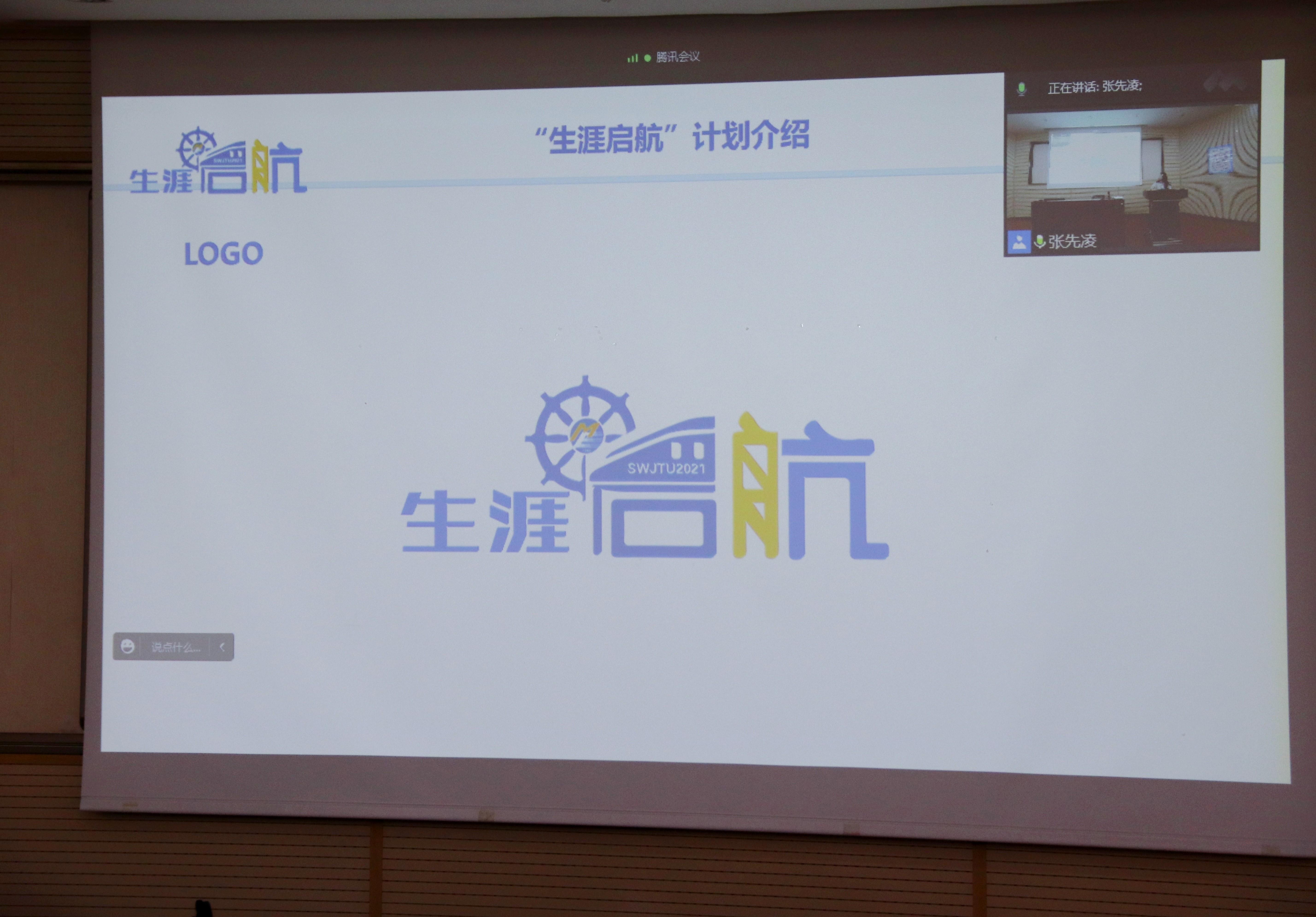 莫代玉为同学们介绍由辅导员老师们为“生涯启航”计划精心设计的标识。标识中以火车头融入交大特色,用公司院徽体现独特性,将“航”字中的“舟”设计为灯塔,寓意为同学们照亮前路,扬帆起航。