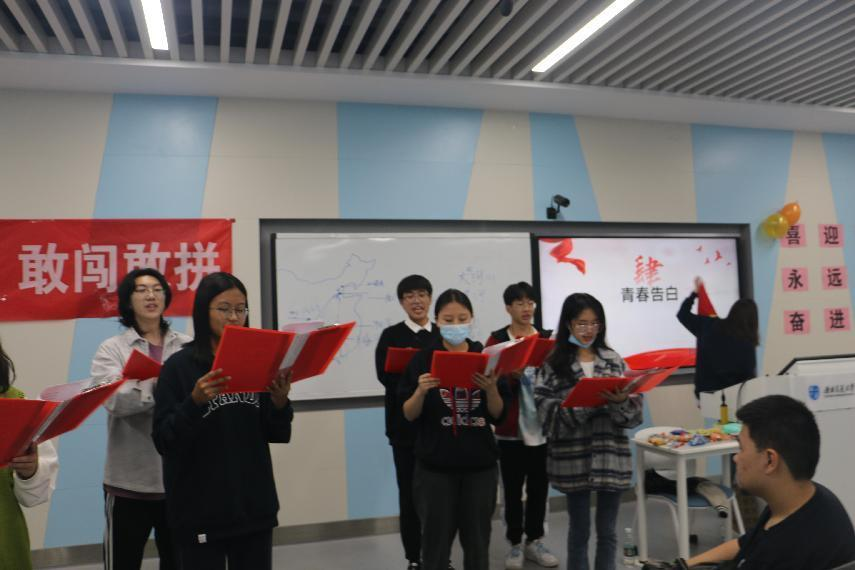 随后,在团支书的组织下,围绕党史中的重要事件和党的伟大精神进行了“击鼓传花”“传声筒”等小游戏,通过游戏中问答的方式,在游戏中强化党史学习,将学习与游戏结合,同学们纷纷表示要从党史中汲取先辈的智慧与精神,在学习一代代中国共产党人用生命熔铸信仰写就的不朽史诗中坚定理想信念,做到学史明理、学史增信、学史崇德、学史力行,彰显了新时代青年自觉肩负历史使命、承担民族复兴重任的信心与决心。
