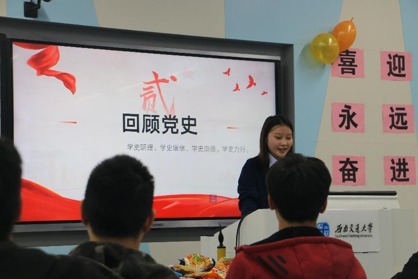 活动伊始,团支书以音乐视频的方式为同学们放映了建党建国以来历史大事件和祖国大好河山的变化,用轻松有趣的方式引入中国共产党百年奋斗史,同学们深刻感受到了党百年奋斗的辉煌成就,也体会到党领导带领人民建立新中国、开创中国特色社会主义的不易。