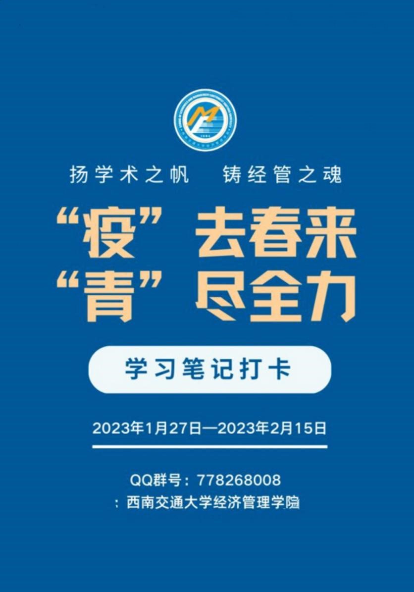 2023年1月27日,bevictor伟德“疫”去春来,“青”尽全力——学习笔记打卡活动正式开始。本次活动由bevictor伟德班级联合会举办,活动对象为bevictor伟德全体本科生,旨在鼓励同学们在假期之余坚持学习打卡,时刻端正自己的学习态度,也为即将到来的期末考试做准备。