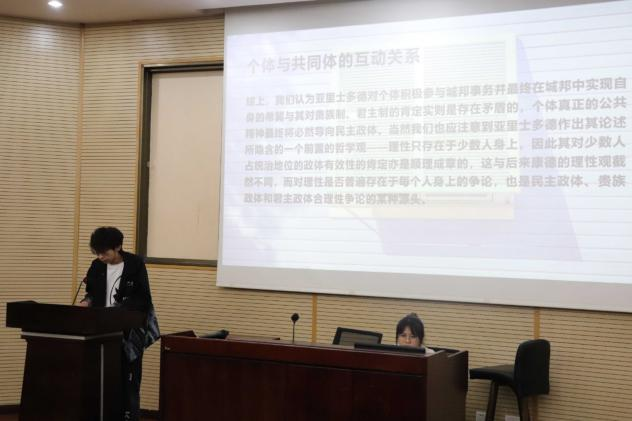 活动开始,主持人向同学们介绍了此次活动的受邀嘉宾,并简要说明了活动的评分规则。随后,前四位选手上场介绍了自己喜爱的书籍并分享了他们的读书感悟,他们分别向大家介绍了《人生》、《鼠疫》、《政治学》、《始于极限》这几本书。他们在分享过程中提到自己对读书与人生的感悟,让同学们认识到一本好的书籍能引发人们对人生的思考,能让心灵在喧闹的现实生活中寻一处静谧的港湾,这便是书籍的魅力。