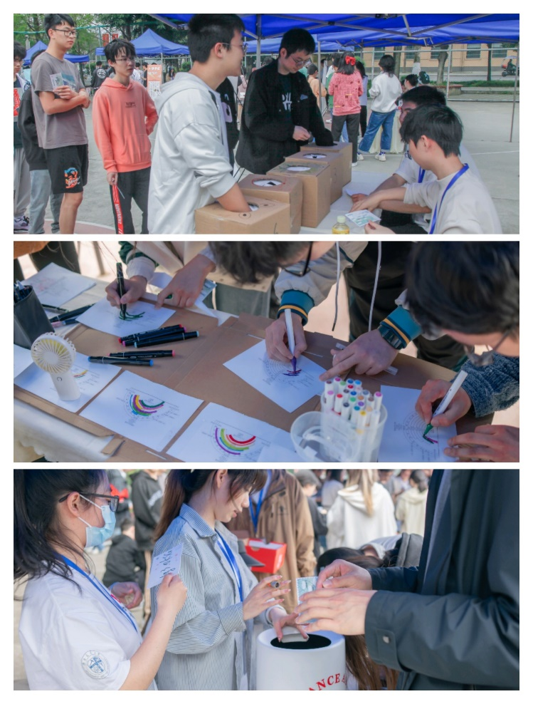 “绘制生涯彩虹图” 用颜色画出人生思考。这些彩虹图反映了每个人独特的成长历程和自我思考,同时也为大家提供了探索自我、分享交流的平台。“心声漂流笺”游戏,参与者交换心声,通过互相倾听和帮助,给陌生同学解惑和提议,让大家都能更好地理解和处理自己的情绪,并与他人建立更紧密的联系。