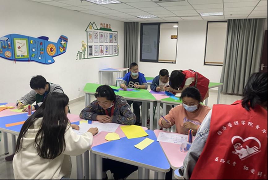4月11日,9名经管青协志愿者经过校内培训,在了解基地学员的基本情况后,于下午两点来到位于金牛区的阳光家园进行志愿服务。