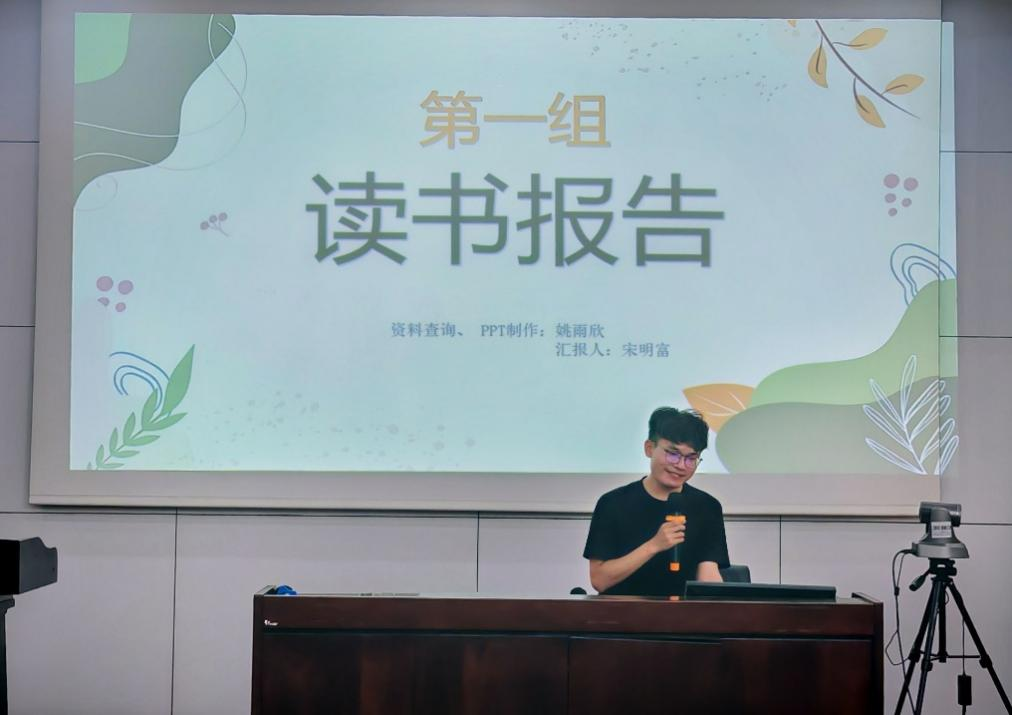活动伊始,第一组的小组代表宋明富同学从《薛兆丰经济学讲义》一书的内容概况出发,为同学们梳理了整本书的脉络结构,指出此书以通俗易懂、娓娓道来的方式介绍了经济学的基础知识和核心概念,为读者理解经济现象和市场变动提供了有力的支持和指导。之后宋明富就书中的“市场机制”与“市场监督”之间的联系进行了详细的阐述,并强调道:在开放和互联网技术的快速发展的时代,我们需要积极谋求新的发展模式,突破传统的经济思维和商业模式。另外,在经济增长的过程中必须注重可持续性和长期视角,保护生态环境,确保资源的合理利用。