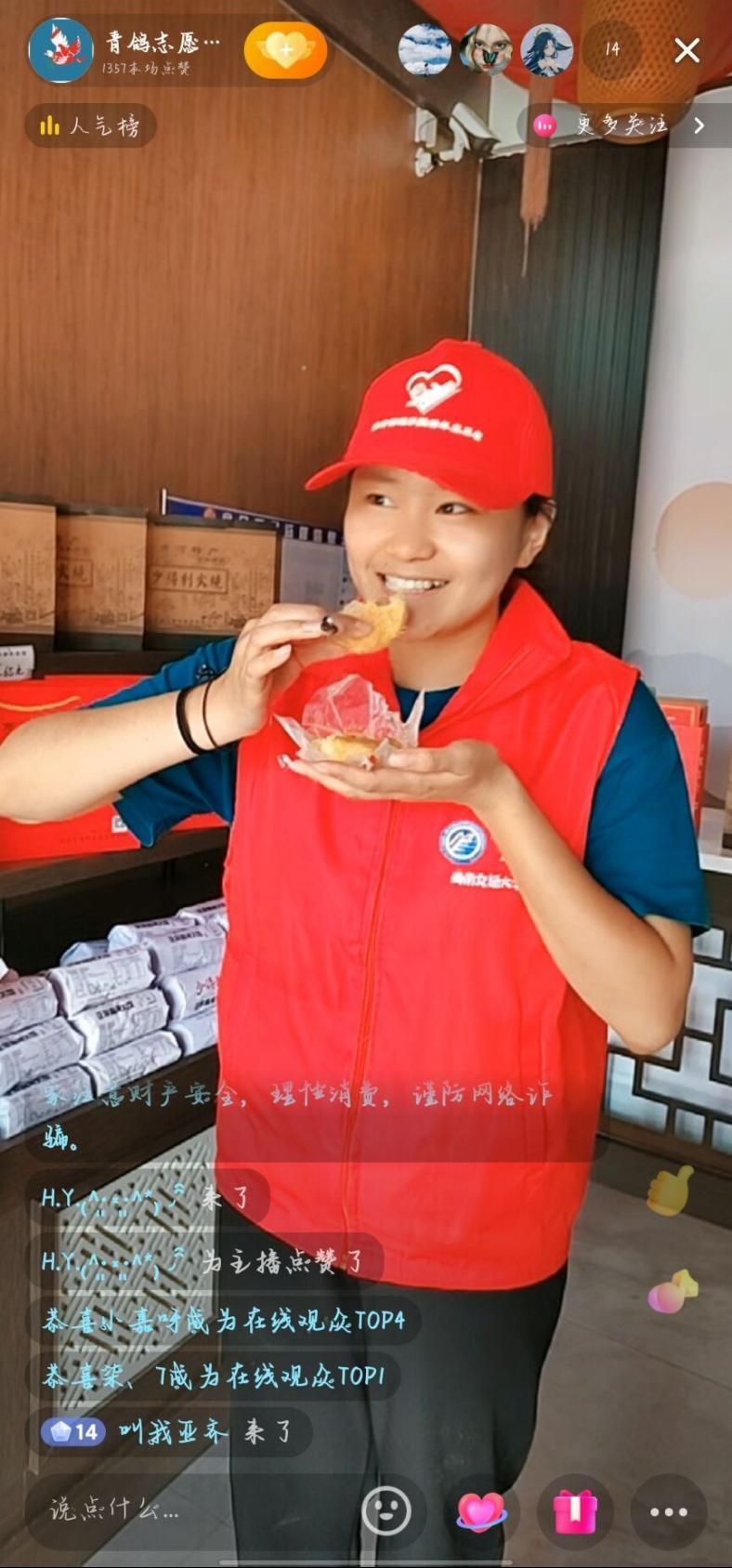 实践的第二部分是对非遗手艺的推广宣传。实践队来到龙桑寺少得利非遗廉洁文化展馆,济南少得利食品有限公司经理李敏向青鸽志愿服务队成员详细介绍了少得利火烧的由来及历史发展,与实践队员们共同观看了少得利火烧的制作过程。火烧的制作工艺在来自外地、甚少劳作的员工们看来既新鲜又具有挑战,实践队员们在非遗传承人的带领下,共同参与了火烧的制作活动,通过亲自动手实操,实践队员们纷纷感叹非遗手艺的精妙和传承的不易。对少得利火烧有了更详细的了解之后,实践队员们在抖音平台开启了少得利火烧的介绍直播,通过对火烧制作手艺、历史传承及风味特点的描述,向大众推广宣传少得利火烧,在抖音平台获得了一定的关注度。
