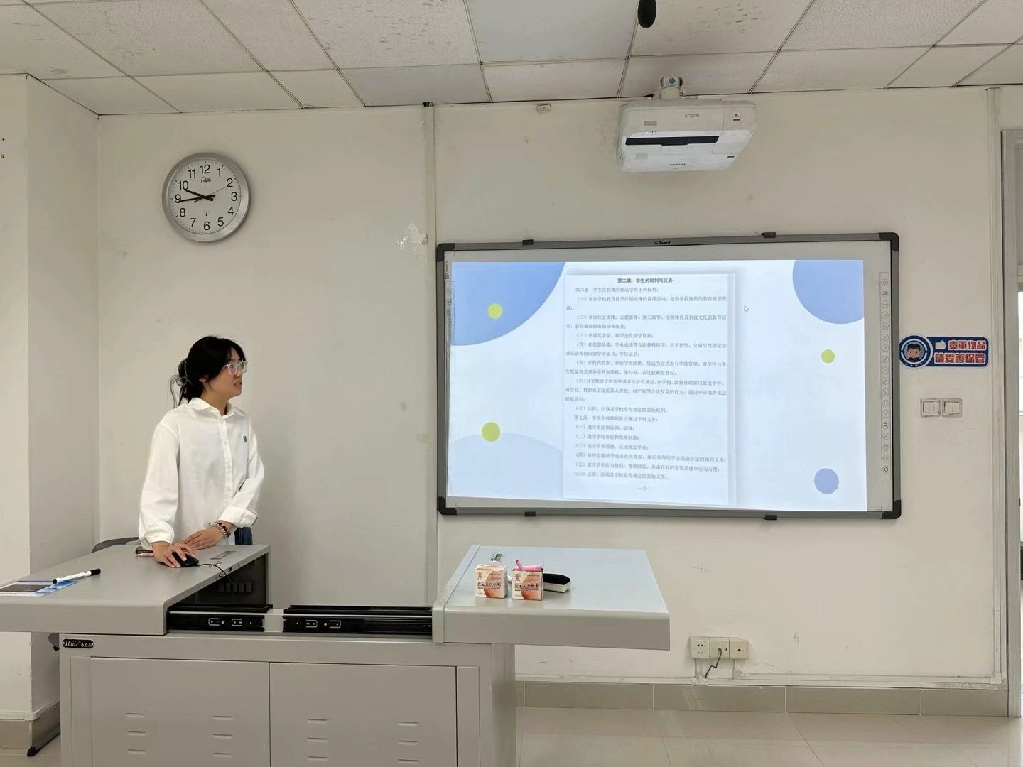 “没有规矩不成方圆”,同学们通过学习了解本科生相关管理规章制度,有助于提高大家的责任意识、纪律意识,促进良好班风学风建设,营造健康、积极向上的学习生活环境。