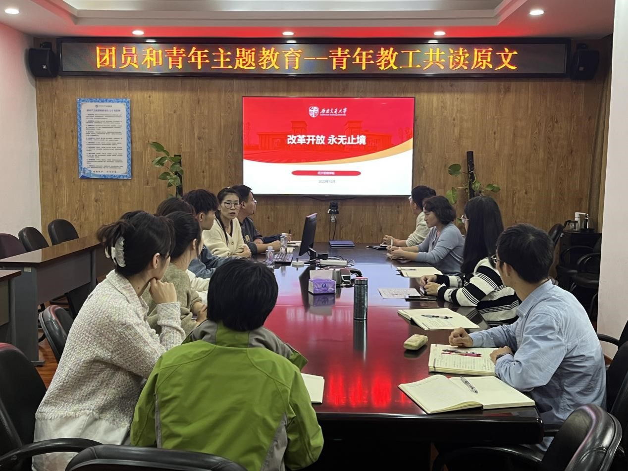 聚焦团员和青年主题教育,扎实做好公司的青年员工工作,2023年10月31日下午3点,bevictor伟德团委组织公司学工组青年教师,在九里校区零号楼0607会议室开展了读原著、学原文、悟原理青年教师共读原文活动。