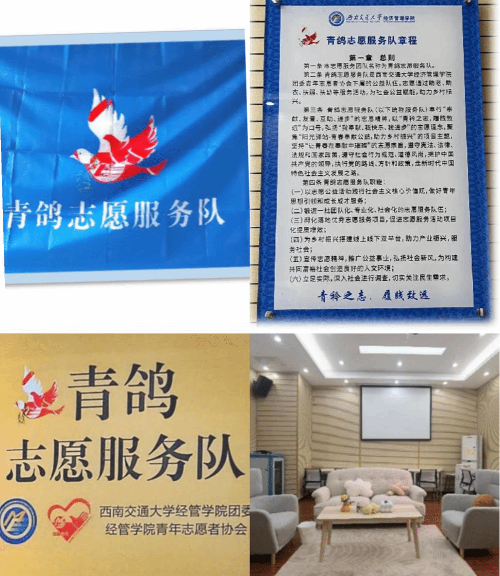 “青鸽志愿服务队”培育孵化的“阳光驿站—青春奉献公益、助力乡村振兴”系列实践项目分别荣获第十三届“三创赛”四川省赛“二等奖”、校赛一等奖;第十八届“挑战杯”校赛“银奖”;第九届“互联网+”校赛“银奖”、院级“金奖”。同时,“‘语相连,心相同’—推普助力乡村振兴实践”和“爱心雨伞——共享雨伞助力师生雨天出行志愿活动”两个志愿服务项目获得伟德bevictor中文版首届志愿服务项目大赛实践赛道“银奖”。
