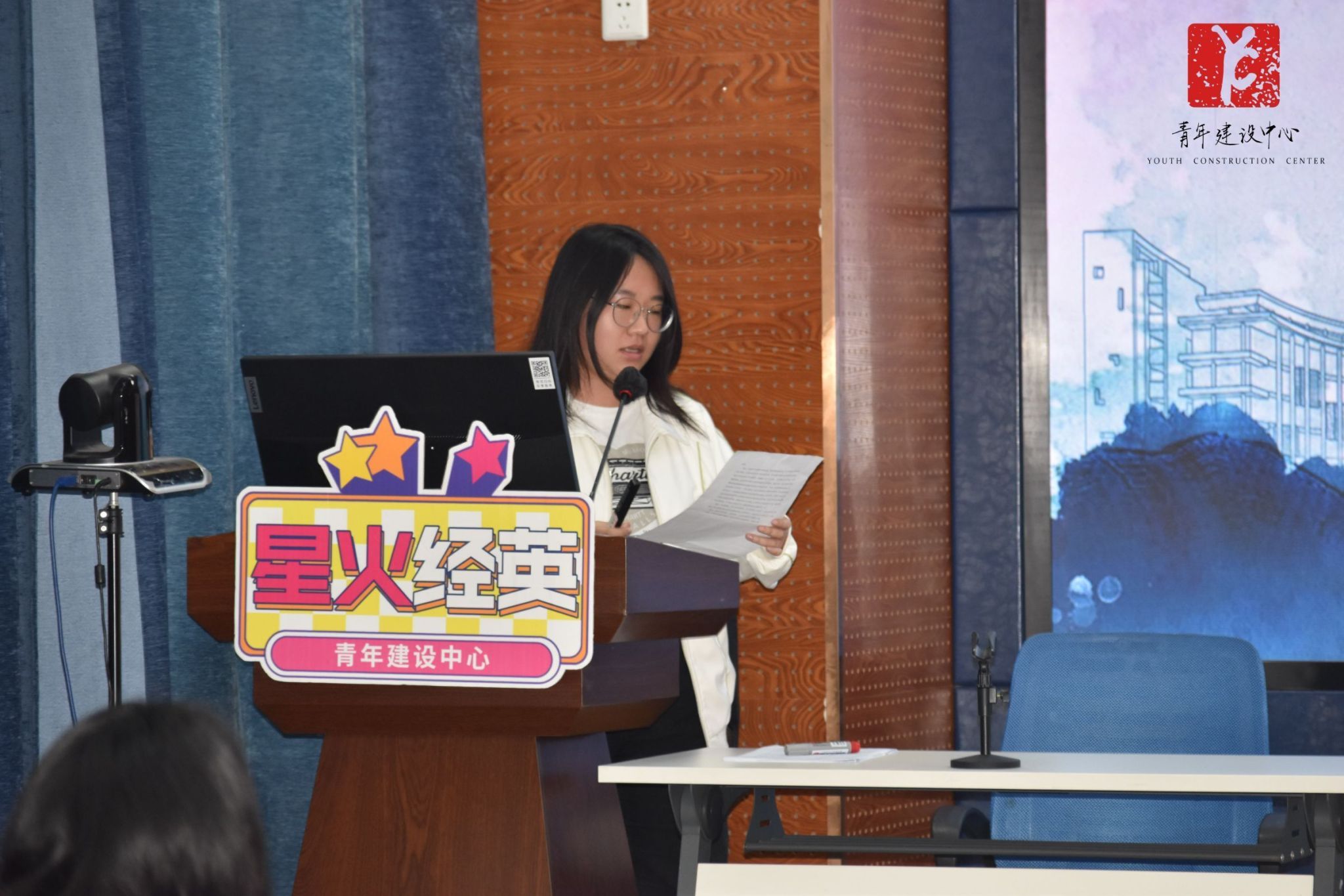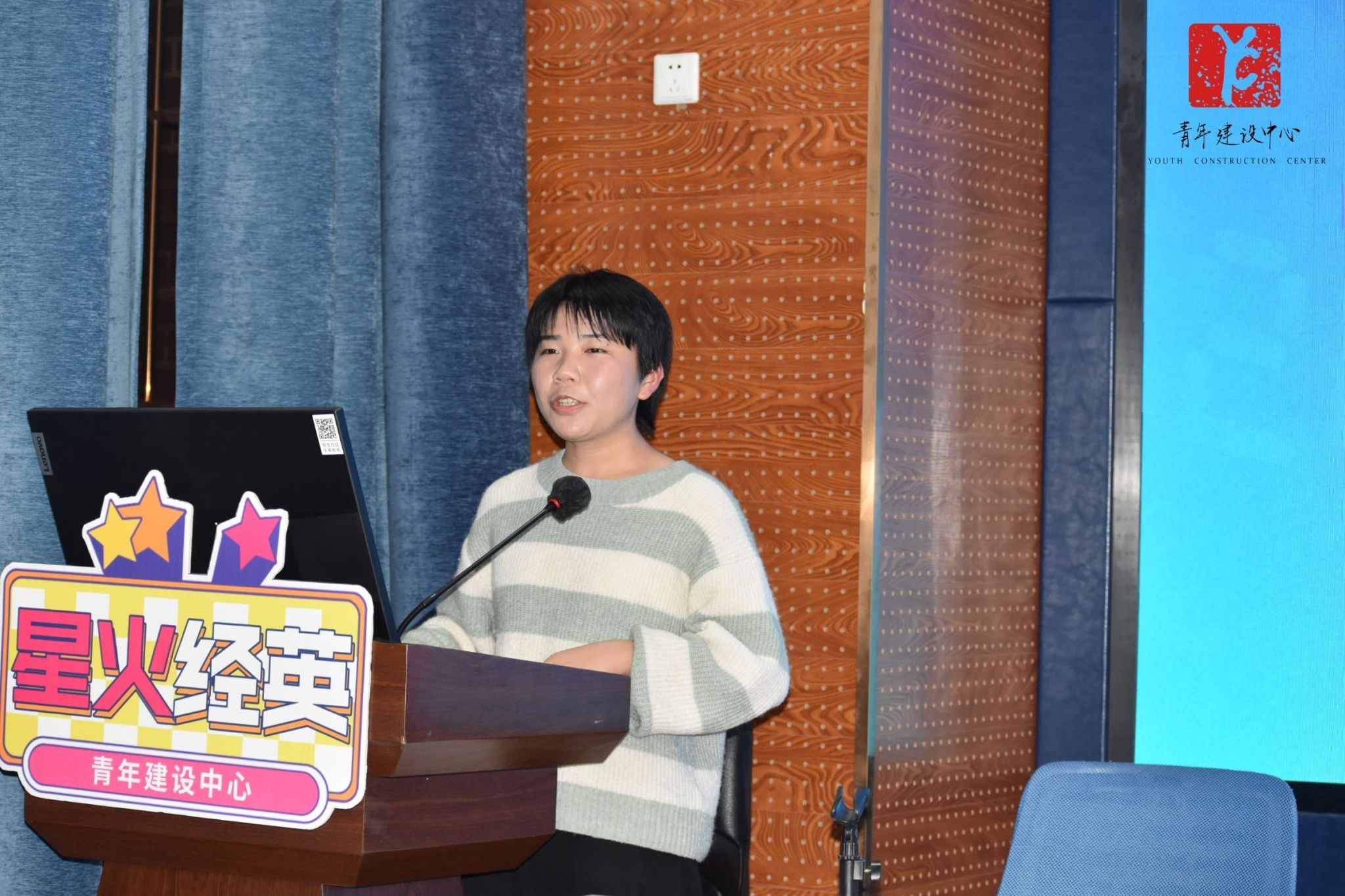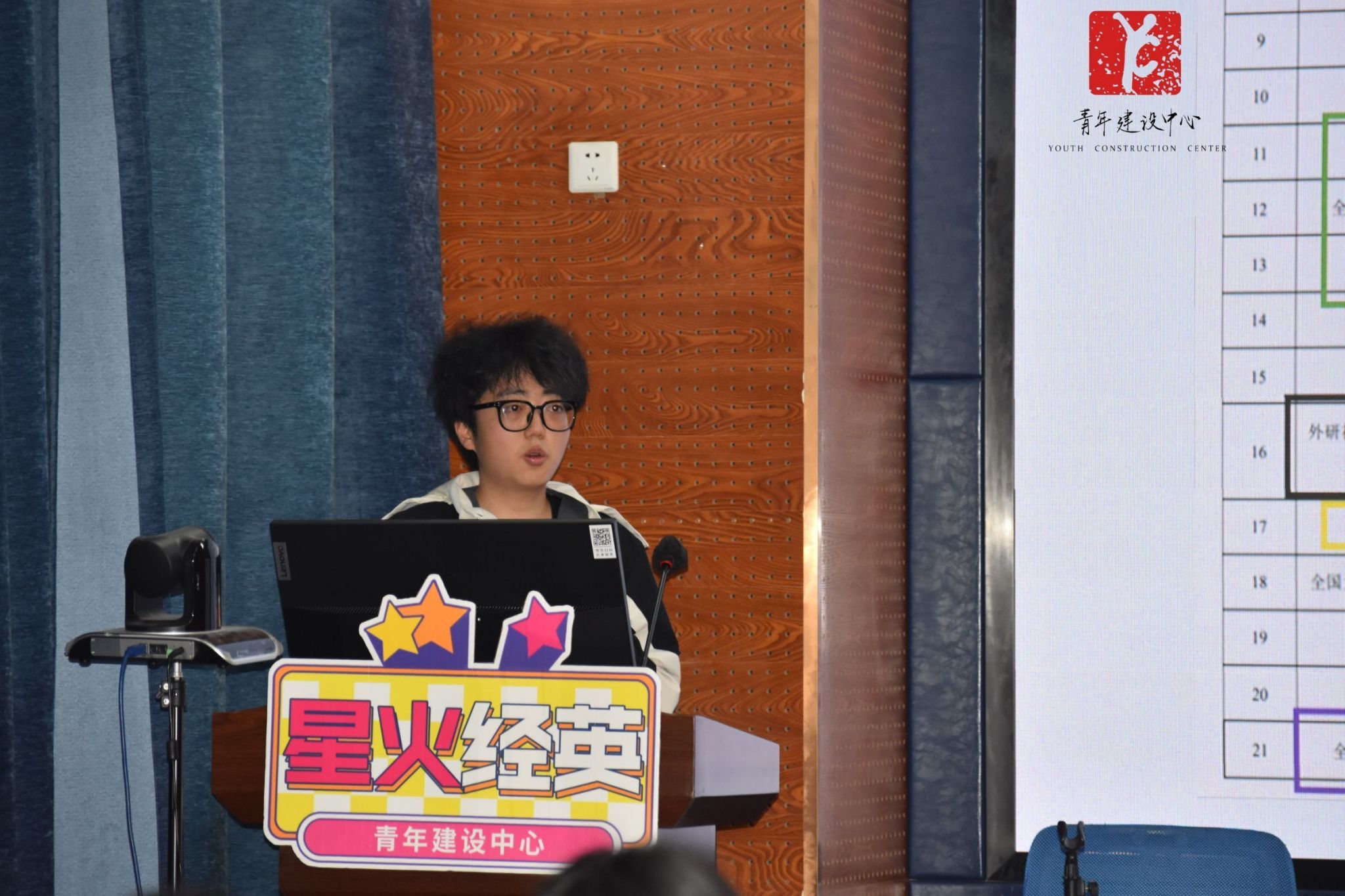 紧接着,薛怡然为团干部们介绍了其团队竞赛的科研成果与科研经历,在介绍过程中分享了关于竞赛的实用技巧。而后,她向团干部们分享了自身对于老员工科研的看法,并结合自身科研经历,运用黄金圈法则为团干部们分享了科研的实用方法。薛怡然鼓励团干部们在假期参与科研实验以获取科研经验,同时也提供了一些参与科研的方法。