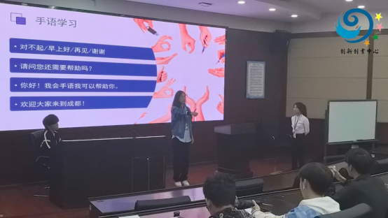 本次读书会还组织参与的同学集体学习部分常用语及成渝建设相关专业用语在盲文和手语里的表达方式。通过摸读盲文和学习手语,切身感受特殊群体的世界,深刻意识到了建设无障碍城市的重要性。现场同学从创新创业、“无障碍”建设、城市规划等各角度对建设无障碍城市进行了深层探讨。现场同学们积极发言,就无障碍城市建设提出了许多富有创意和建设性的意见和建议,现场气氛热烈而活跃。