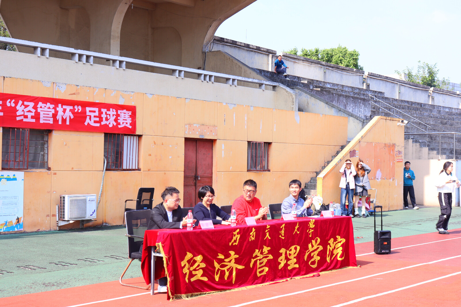 2024年10月28日中午,2024年“经管杯”足球赛开幕式暨揭幕战在九里校区足球场举行。研究生辅导员王哿老师,伟德bevictor中文版体育公司足球老师、成都市足球协会裁判讲师马朗老师,bevictor伟德团委副书记、青年志愿者协会指导老师、本科2024级辅导员陈建奇老师,bevictor伟德团委副书记、员工会指导老师、本科2023级辅导员苏扬老师出席本次开幕式。