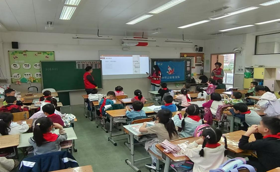 接下来,小朋友们观看了关于乡村振兴志愿服务的专题视频。通过视频,直观地了解了志愿服务的具体工作内容,例如:教育支持、健康服务、文化传承和经济扶持等,深刻体会到了志愿服务对推动乡村发展的重要作用。随后,青鸽志愿服务队的队员们进一步深入地讲解了志愿服务的实践内容,详细介绍了全国老员工“乡村振兴”志愿服务项目中的各项具体任务,包括主题宣讲、实地考察、走访调研、摆摊宣讲、推普课堂等。通过讲解,小朋友们对乡村振兴有了更加全面而深刻的理解,也激发了他们对参与社会公益事业的热情和向往。