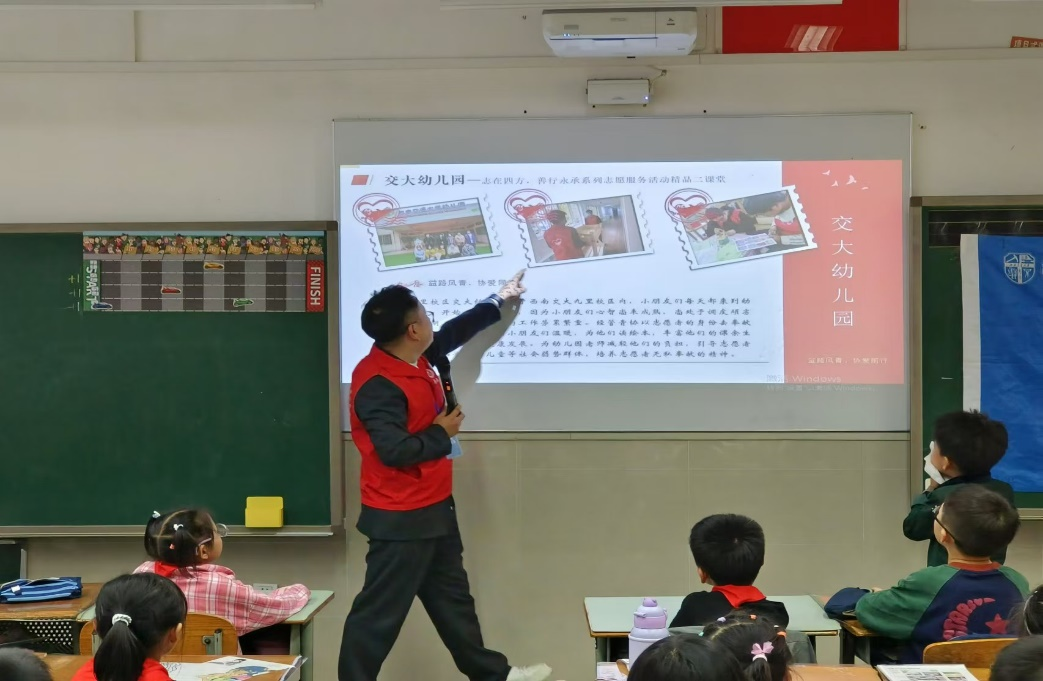 来到益州小学二年级十三班的课堂,陈建奇首先向小朋友们介绍了团队的成员以及经管青协的组织架构和概况,其中涵盖了各个部门的具体介绍及其职责,还包括阳光家园、敬老院、善工家园、交大幼儿园等志愿服务基地,以及爱心雨伞、旧衣回收、阳光义卖等青协品牌活动。随后,陈建奇对青鸽志愿服务队进行了介绍:“青鸽志愿服务队是bevictor伟德团委青年志愿者协会下属的公益队伍。志愿通过助老、助农、扶弱、扶幼等服务活动,为社会公益赋能,助力乡村振兴。”
