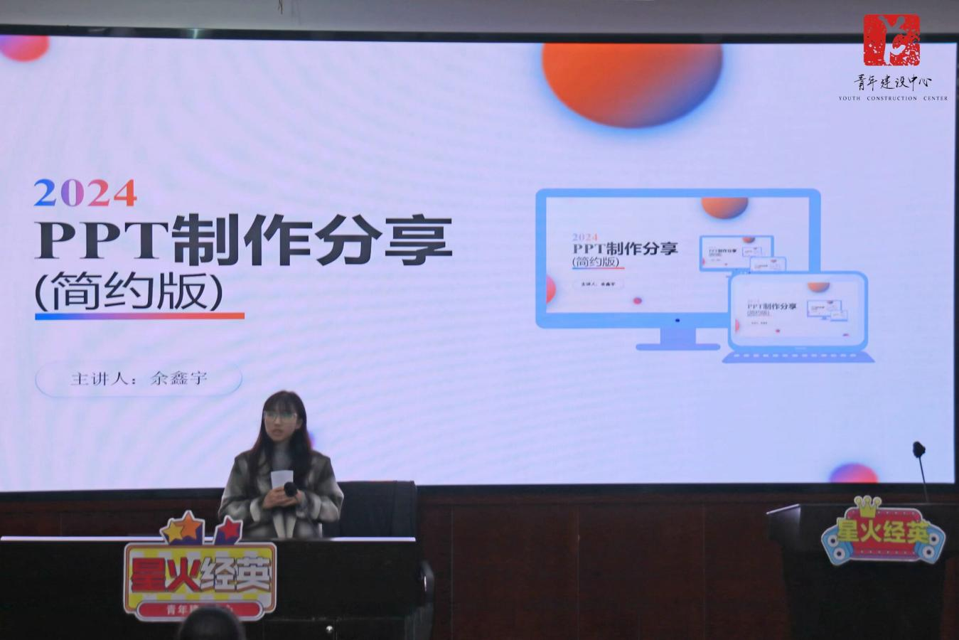 2024年11月15日晚19点,“星火经英”计划第十四期第五次团干部培训于J0228顺利开展,本次培训由伟德bevictor中文版PPT协会会长余鑫宇主讲,主题为“PPT制作技巧与美化实操”,旨在帮助团干部们提升PPT制作能力,更好地将制作技巧运用在实践之中。
