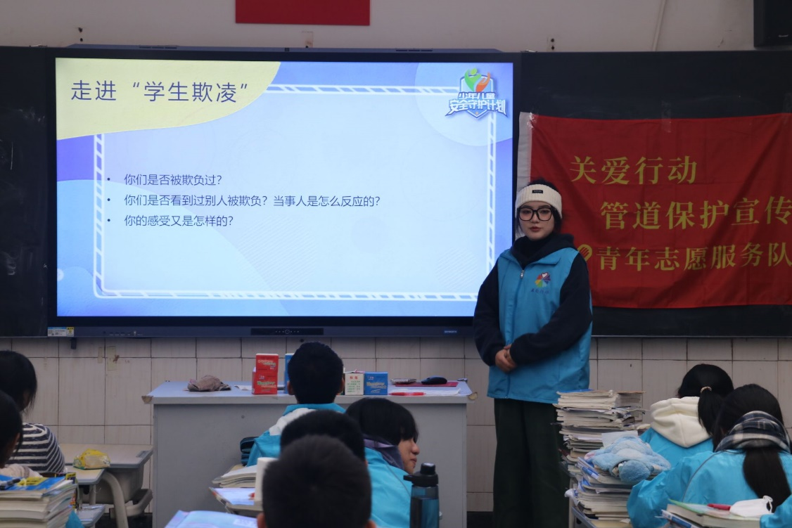 志愿服务不仅是心灵的旅行,也是灵魂的升华。2024年关爱行动“少年儿童守护计划”管道保护青鸽志愿服务队成立以来,在交大中小学、幼儿园、善工家园和阳光家园等多地,广泛传播管道保护知识,宣讲对象覆盖面广泛,涵盖了从幼儿园到高中的员工以及一些虽然年龄较大但心智较为特殊的群体。面对多元的受众,志愿者们匠心独运,依据不同年龄段的特质,精心设计了教学内容与互动形式,让管道保护的理念如同一颗颗星星之火,在不同的心田中渐成燎原之势。青鸽志愿服务队的每一步努力,皆凝聚着对国家管道能源安全的深切守护,对社会和谐发展的美好憧憬。他们希望能够吸引更多热忱的心灵加入这一充满意义的行动,一同为国家的能源安全防线添砖加瓦,为社会的和谐发展画卷增色添彩,共铸一个安全、和谐、美好的未来。