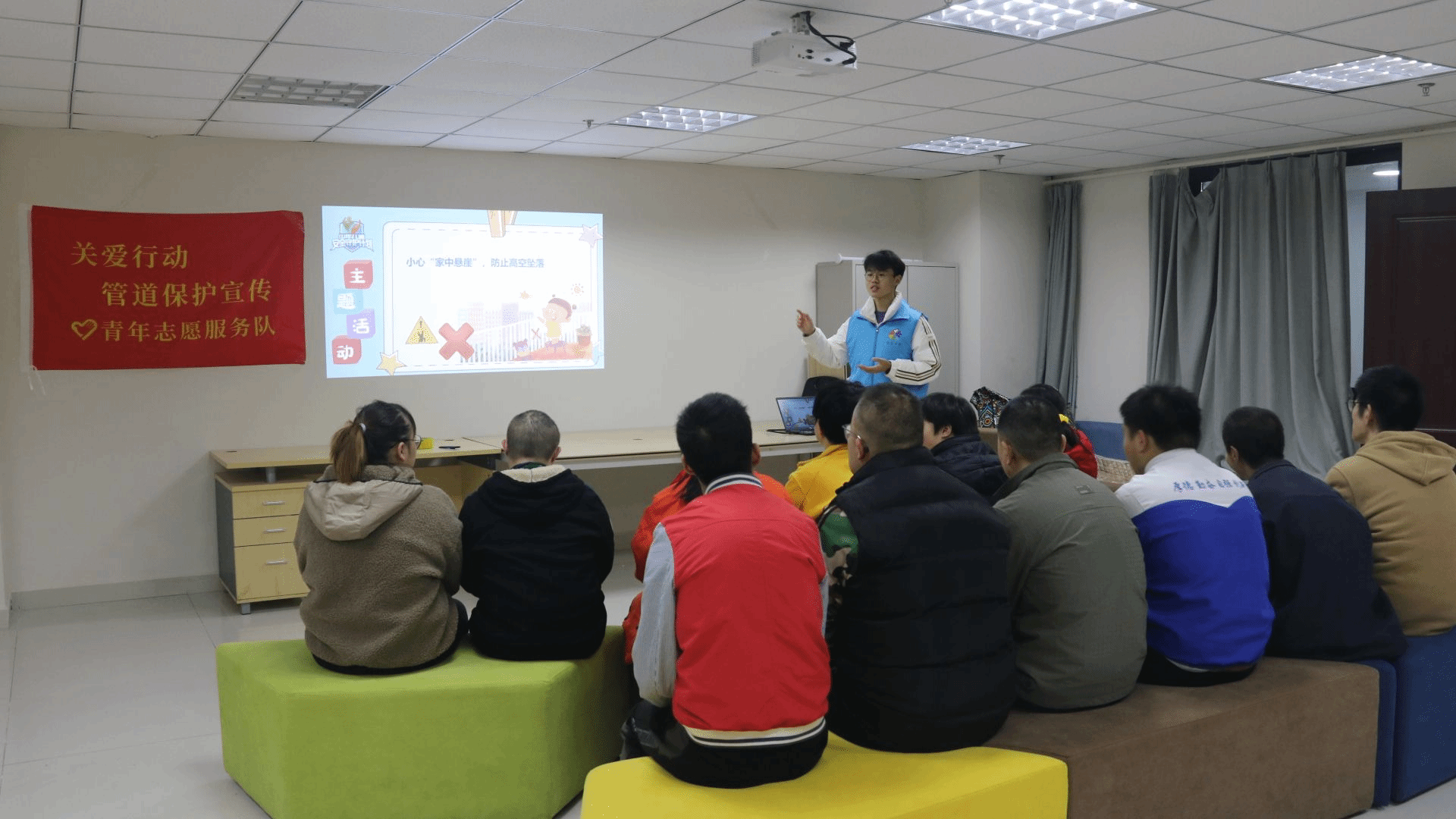 11月14日下午两点,青鸽志愿服务队的队员们来到了善工家园志愿服务基地,开展了一场主题为管道保护与自我防护的宣传活动。此次活动的主要内容聚焦于预防意外伤害方面,旨在为善工家园的“大朋友们”提供实用的自我保护知识和技能。