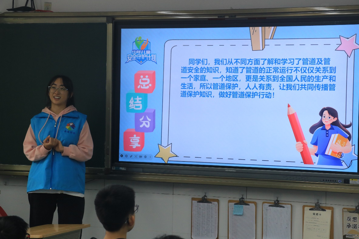 11月8日上午10点40分,青鸽志愿服务队的队员们走进了伟德bevictor中文版子弟小学六年级三班的教室,带来了一场生动有趣的管道保护宣传课程。此次课程内容丰富多样,覆盖了以下几个方面的知识点:“藏起来的公路”“西气东输知多少”“地下公路设施多”“管道保护有措施”“管道的内忧外患”“管道也要被保护”以及“管道泄漏会逃生”。
