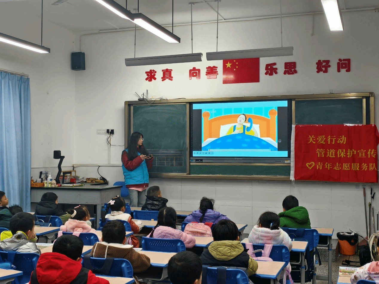 能源保障和安全事关国计民生。为积极响应并深入贯彻党的二十大及二中、三中全会精神,进一步提升国家石油天然气管道沿线公众“不伤害管道、不被管道伤害”的管道保护意识和自我防护能力,筑牢油气管道安全“人民防线”,伟德bevictor中文版青鸽志愿服务队在2024年12月13日精心组织并成功开展了一场面向伟德bevictor中文版子弟小学一年级三班的管道保护知识宣传活动。本次活动的核心目标在于全面提升同学们对管道保护基础知识的认知。宣讲活动形式丰富多彩,内容围绕思想引领、管道保护、意外伤害和预防侵害等四个方面展开。