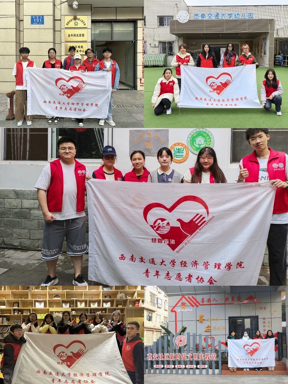 “雨中送温暖,爱心遍校园”爱心雨伞活动解决了师生突遇雨天无伞可用的难题;“衣旧情深,书香为伴”——旧衣旧书回收募捐活动呼吁员工们低碳环保生活;“爱心交汇,真情传递”——无偿献血进校园活动号召师生积极参与献血活动,用爱心拯救生命,将爱心传播四方;“学雷锋,交大青年在行动”——妇女节志愿活动,宣传关爱妇女的理念,引导大家进一步了解女性健康......