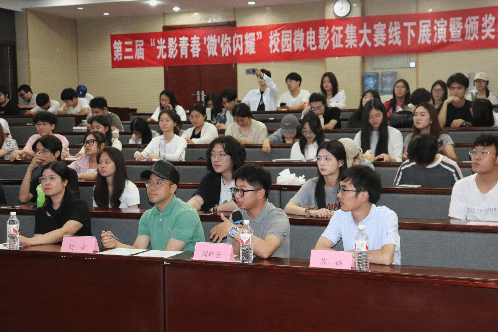在展演结束后的评审环节中,刘亮老师、贾佳老师、周桎宏老师分别对作品进行专业点评。互动环节中,观众就拍摄手法、剧本构思等问题与主创团队深入交流,现场掌声不断,气氛热烈。