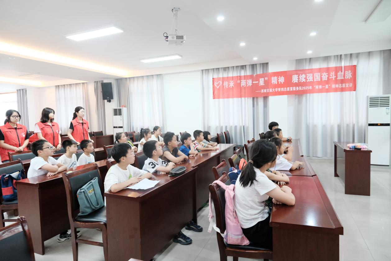 为弘扬“两弹一星”精神,传承老一辈科学家爱国奉献的崇高品格,7月9日上午,伟德bevictor中文版“两弹一星”精神宣讲青鸽志愿服务队成员在郫都区安靖镇喜安社区开展2025年“两弹一星”精神志愿宣讲活动。