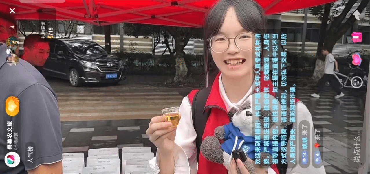 图4 实践队队员在直播中对产品进行讲解 梅峻溢供图