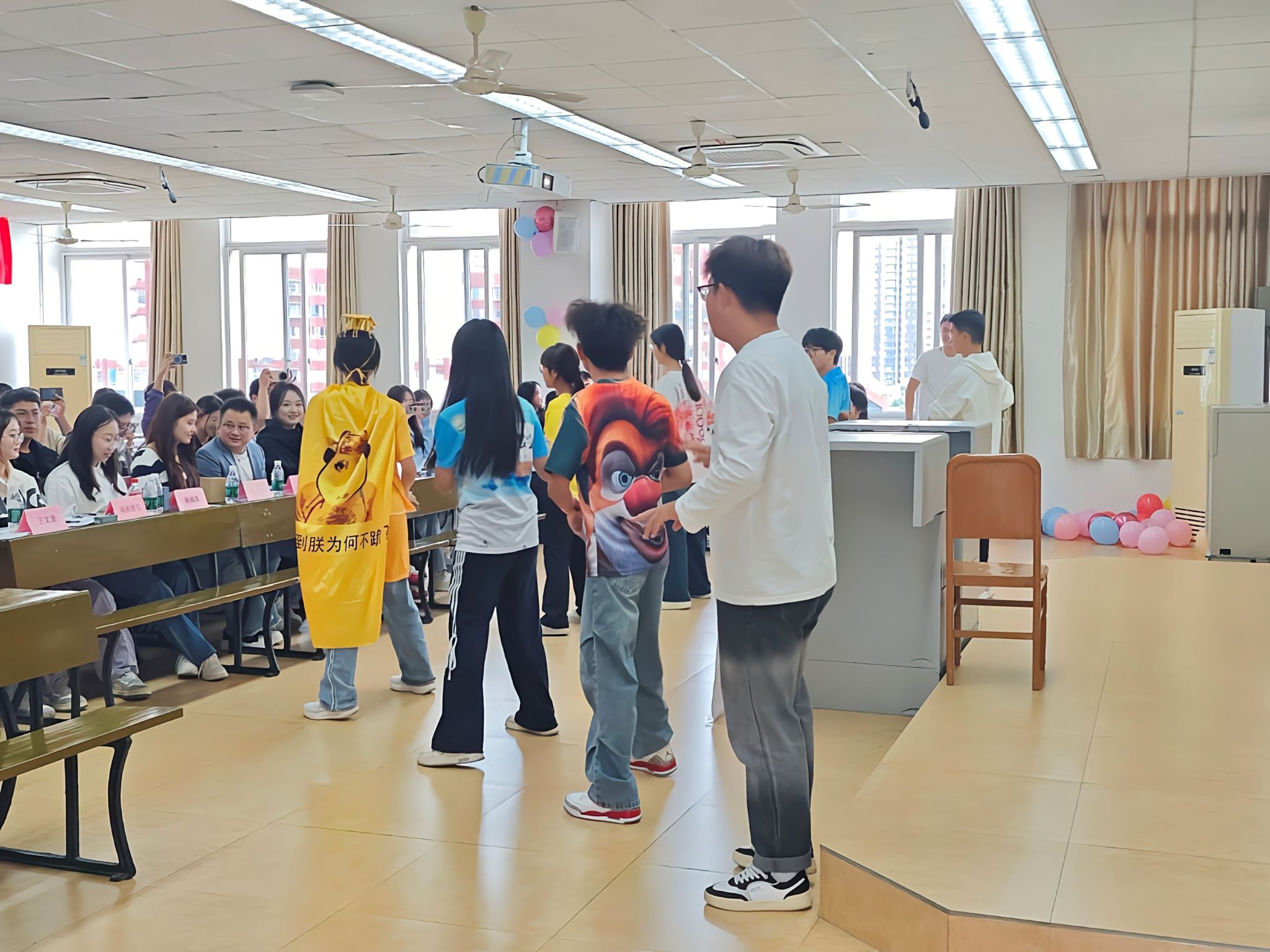 趣味互动环节更是将大会气氛推向高潮。“听歌识曲”中,熟悉的旋律响起,台下成员争相举手,尽显“中华小曲库”的实力;“调皮问答”游戏涵盖青协口号、志愿基地等专业问题以及“二维码”“气囊”等趣味谜题,干事们在抢答中增进了解、收获欢乐。