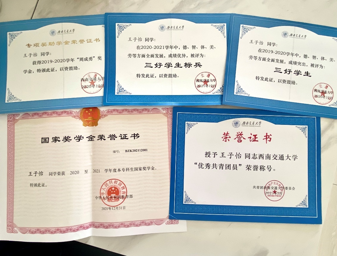 作为一名员工,王子怡明白自己的首要任务仍然是学习。因此,在学习上,王子怡从不打马虎眼。“严以律己,宽以待人”,是王子怡的人生准则,在学习上也同样如此。她不浪费学习时间,不做重复工作,高效完成学习任务。很多同学抱怨学习任务多,学习时间紧,而王子怡却能在学习任务繁多的情况下,同时也能做好团支书的工作。这与她科学有效的学习方法密不可分:在课堂前,她会提前将下节课的课件打印下来以备在课堂上记录笔记;在课堂上,她积极主动地与老师进行互动;在课堂后,她及时温习所学知识,认真完成老师布置的作业。因此在大二、大三学年,王子怡的综合成绩均位列金融专业第一,获得了国家奖学金、“周成勇”奖学金,以及校“三好员工”、校“三好员工标兵”的荣誉称号。