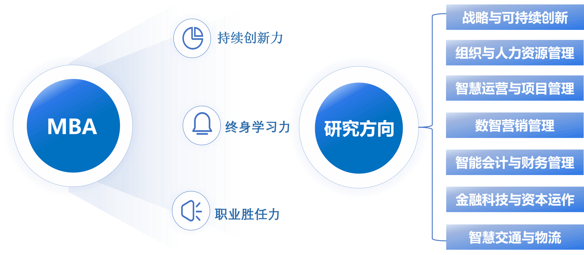 培养目标:始终秉承公司“交通天下”的办学使命,依托公司强大的工科背景和鲜明的交通运输行业资源优势,围绕国家“一带一路”和成渝地区双城经济圈建设的重大战略需求,培养具有国际视野、创新意识、以逻辑和数理分析能力见长的高素质复合型工商管理人才。