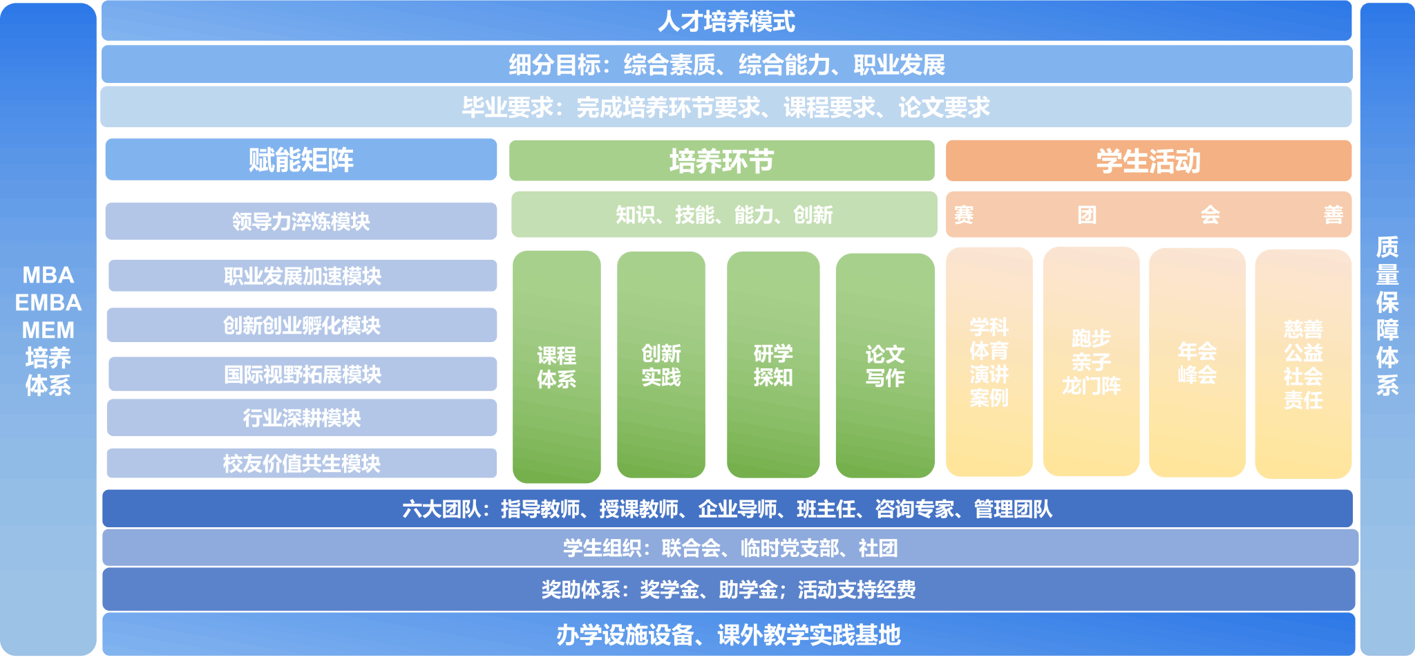 伟德bevictor中文版专业硕士项目(MBA、EMBA、MEM)课程体系紧贴国家发展战略与行业前沿,聚焦管理理论与实践融合,分层次、模块化打造高水平人才培养体系。