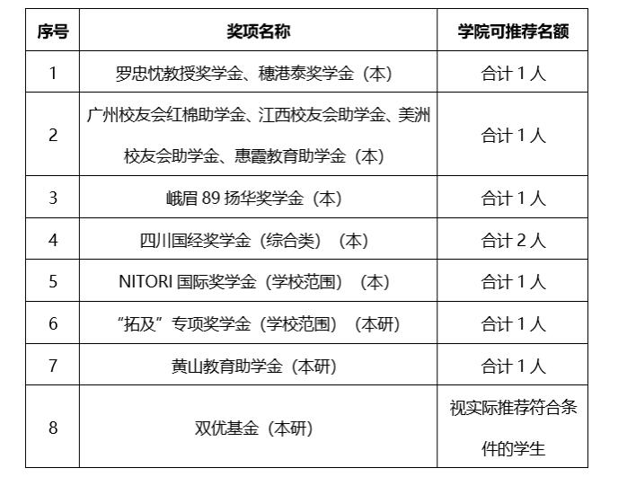 2. 公司范围专项奖助学金可推荐名额(相关管理办法见附件5:2022-2023学年bevictor伟德本科生专项奖助学金评定办法汇总)