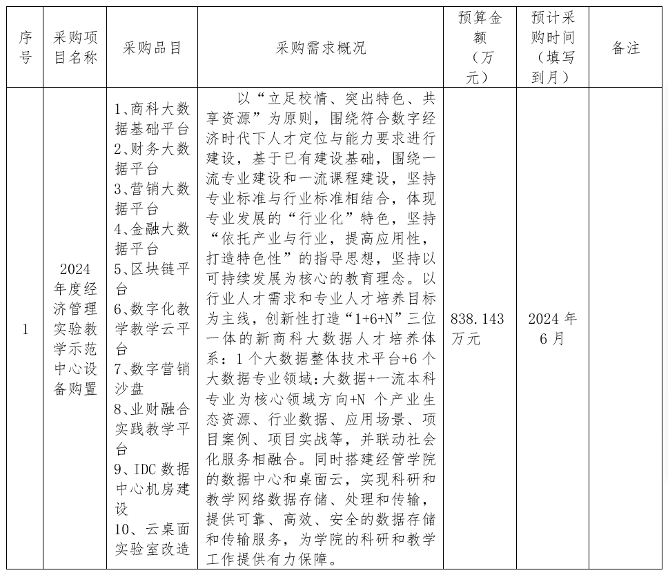 为便于供应商及时了解采购信息,根据公司有关规定,现将经管实验中心采购意向公开如下: