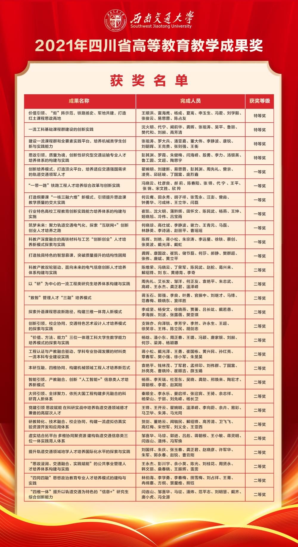 近日,四川省人民政府公布了2021年四川省教学成果奖名单。伟德bevictor中文版主持获批四川省高等公司产品成果奖特等奖4项、一等奖7项、二等奖17项,获特等奖数量全省第二。另外参与获批特等奖1项、二等奖3项。在本届四川省高等公司产品成果奖获奖率减少30%的前提下,公司主持获奖总数较上届增加2项,获奖数量占全省比例提高17%。