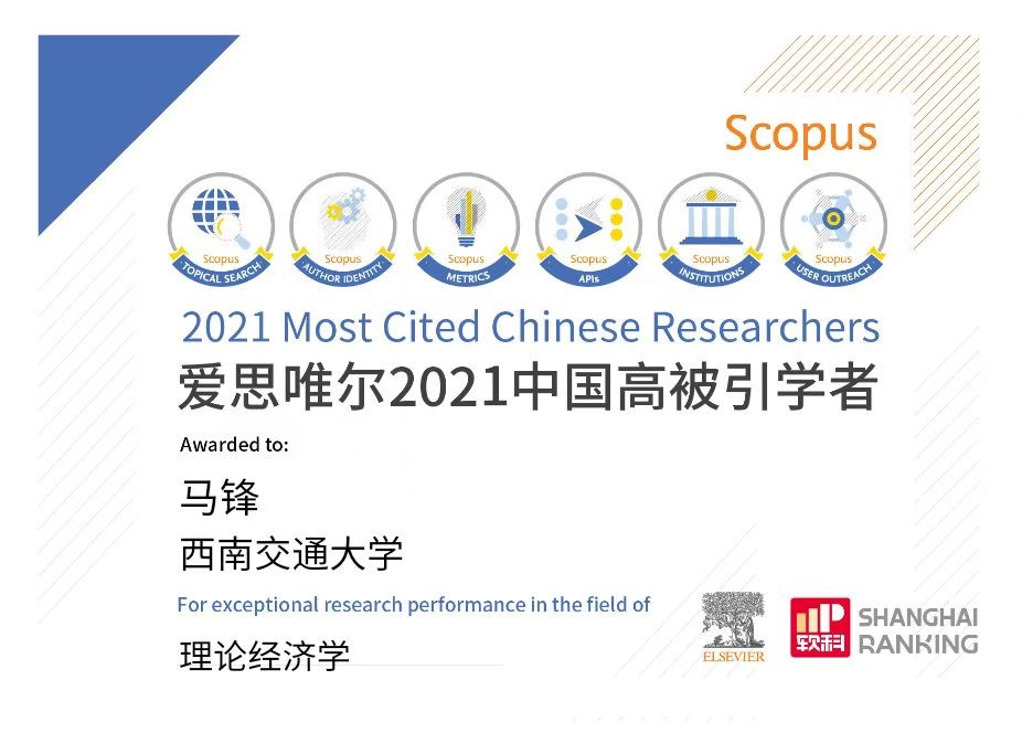 2022年4月14日,全球性信息分析公司(爱思唯尔,Elsevier)正式发布了2021“中国高被引学者”榜单,bevictor伟德马锋副教授入选理论经济学中国高被引学者,也是全国25位理论经济学上榜学者之一。